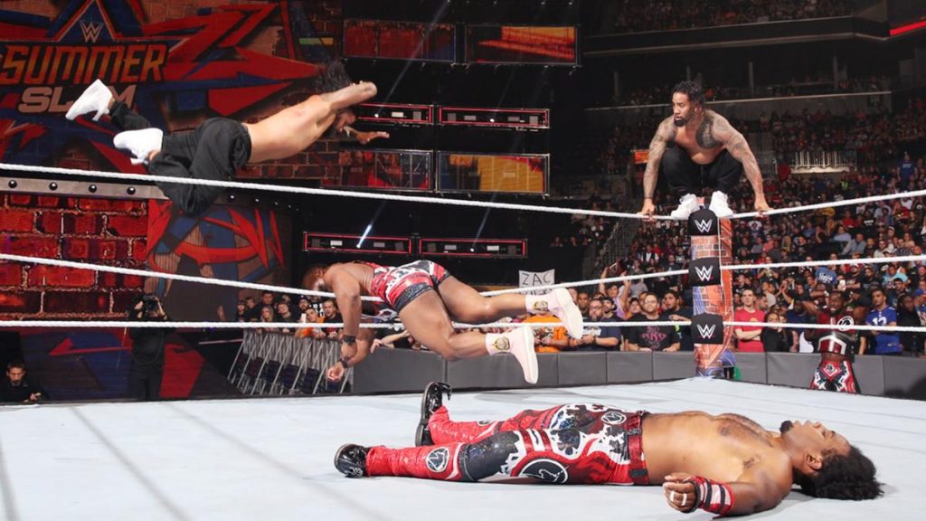 The raucous NXT crowd sum up this match best with the chant, ‘this is wrestling’. From the ridiculous spots they pull off to the consistently compelling character work, this match is a perfectly told story from two women who are in the pocket throughout. It’s not easy for a squeaky clean babyface like Bayley to get over with the fans, but she always managed to connect with the NXT audience, and that connection was only amplified here by Banks’ stellar and detailed heel work. Despite this being the penultimate match on the night, these two stole the show with a fight that never let up, and is still being talked about today.